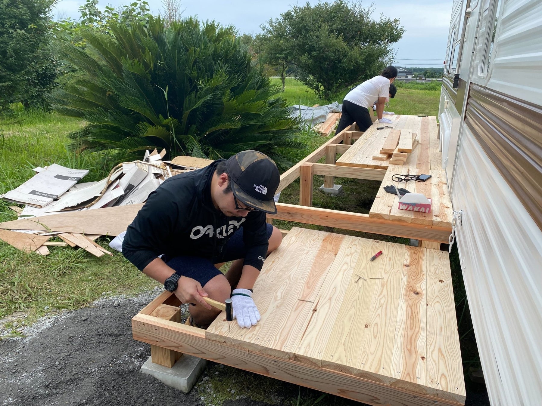 さらに、HafHコミュニティからDIYツアーを組んでいただき、東京や大阪からHafHユーザーが来町、「ALA」に宿泊し、トレーラーホテルの入口につながる階段・デッキをDIY。自分たちで出来る限りのことを行いながら、人を巻き込み、手作り感を大事に製作しました。